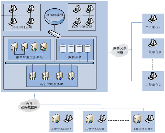 院各档案管理部门部署浮点档案管理系统,通过院局域网连通后。通过超级管理员进行符合各部门的档案数据结构及数据权限、功能权限的设置。